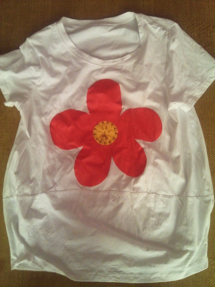 后来我自己也在店里挑了一件短袖,哺乳期啊,伤不起啊,家里好几条裙子啊,可惜暂时穿不了,喂奶不方便,真是没有办法,后来就挑了一件白色的宽松版型的短袖,我想说穿着真的好显肥啊,可是实在是不知道该穿什么样的衣服,面前有朵花,花上面的花蕾部分是由小珠子串连起来的,女儿对这个比较感兴趣,总想拿下来玩,哈哈,到底是女孩子啊,对这些很感兴趣的,不过这衣服虽然样式不好看,穿着倒是非常的舒服的,对于这一点我还是非常的满意的。