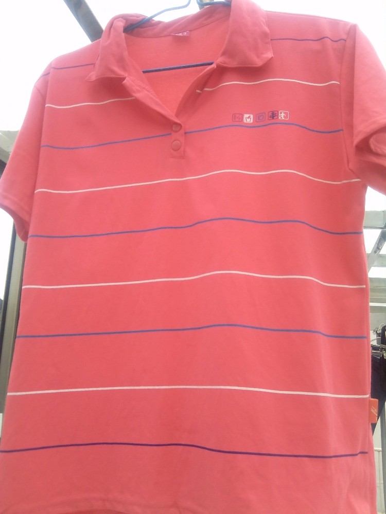 后来老妈看中了一件类似运动装的那种短袖,只是店里的颜色不多,有橘色、粉色之类,没想到还是粉色啊,哈哈,后来老妈选的还是跟粉色有关的,好吧,看来老妈只是不满意之前的那件网纱的,对于运动装粉色的还是勉强可以接受的。当时老妈看到这件运动短袖的时候,拿的是M码的,这么小号的肯定穿不了的,后来卖家从新拿了件大号的给她,我觉得不好看,但老妈说穿着还挺舒服的。