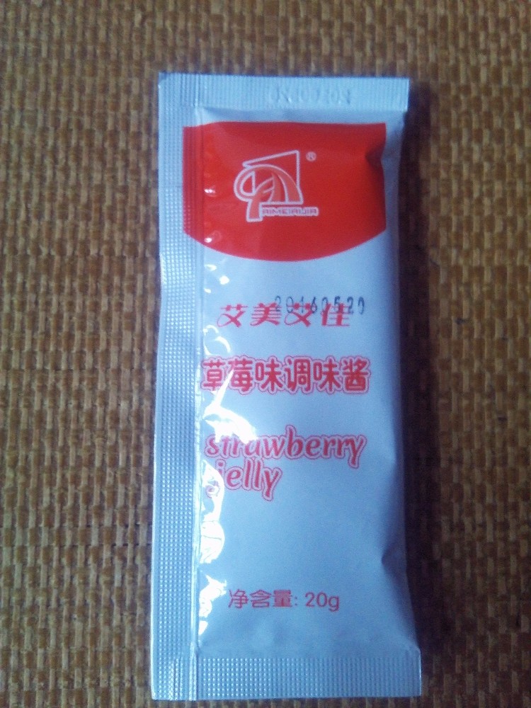还送了一小包的草莓味调味酱,一包的净含量是20克,看着倒是觉得还不错,生产日期也新鲜,是今年的5月份的,刚好儿子比较喜欢吃这些番茄酱啊草莓酱的,我就直接先给儿子吃了,也没有打算等酸奶做出来的时候再放在酸奶上面,毕竟只有一小包,要是让儿子等有点儿小困难啊,面对吃的,孩子的意志力不强啊。