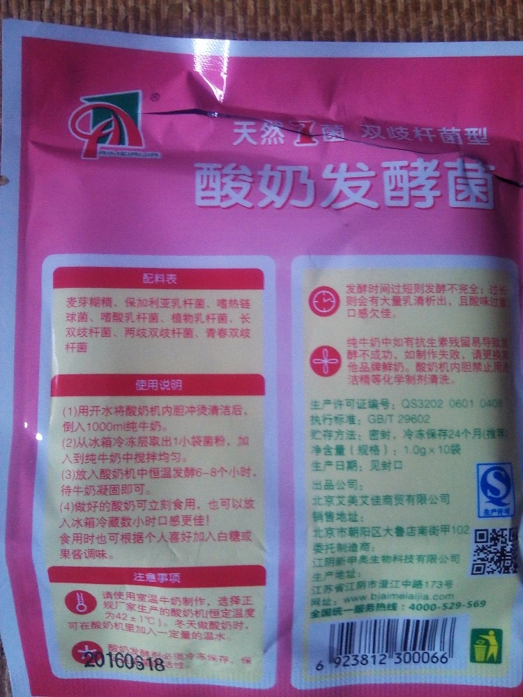 自打在地带中到酸奶机后,儿子几乎是天天要我给他做酸奶吃,送的酸奶粉做了吃完之后,儿子就不是太爱吃超市卖的那种了,后来我就在网上买了同款的酸奶粉,一下子买了10袋,已经全部吃完了,小子又开始要吃酸奶了,让我给他做,告诉他家里没有了,催促我赶紧去买啊,这酸奶粉有点贵,看到别的宝妈说买菌粉也是可以做的,我没有做过,也不知道自己会不会做的起来,有点儿小迟疑,但想着老公也很爱吃酸奶,要是用菌粉的这种做出来的话,倒是可以多做一些出来给老公吃吃。