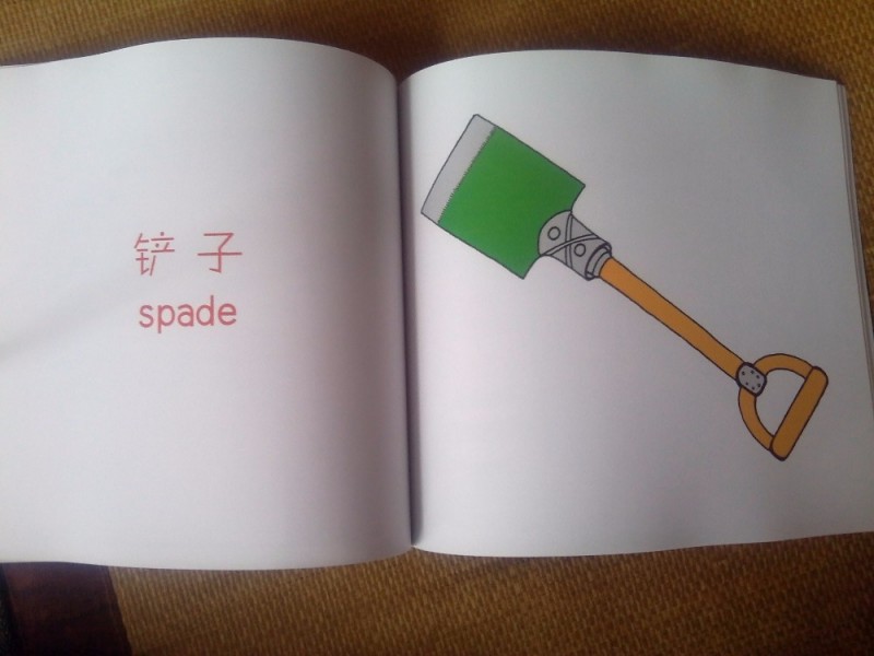 这本书里面的故事设计给人一种很巧妙的感觉,让人想不停的读下去,你看,蚂蚁不小心掉下来了,掉在一块涂了黄油的。。。看到这里,你是不是很好奇,蚂蚁掉到哪里去了啊,赶快猜猜看,嘻嘻,对咯,掉到了面包上面,翻到下一页,你就会看到面包两个字啦,红色的字体,很显眼,也很大,中文的下面是对应的英文,我们可以在告诉孩子这是面包的同时,也教给他面包的英文怎么读。就这样一页一页的读下去,让我们一直都想有读下去的欲望,总想知道下一个出现的事物跟我们自己想的是否相同,相同的话自然是很开心的,不同的话,让我们好好思考一下,为什么我们想到的是别的,要是换成我们自己想到的东西,是否合理,开动自己的小脑筋吧,这样的阅读方式充满了趣味性。