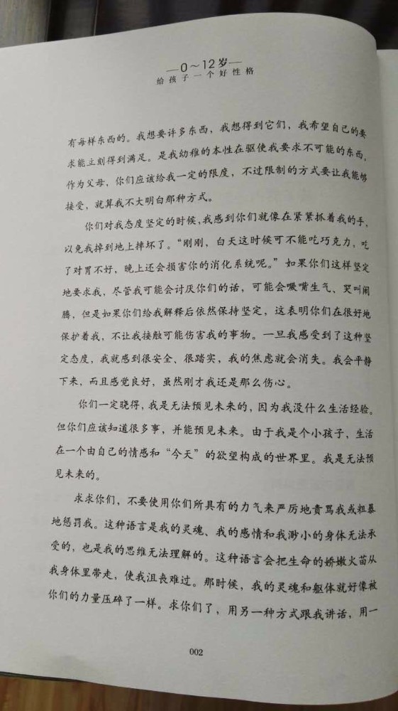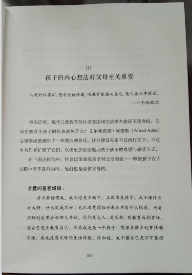 拿到这本书,我没有按顺序开始读,而是首先看了序言和目录,其中第8章节,“童年经历对成年生活的影响:32个案例分析”吸引了我,一口气读完了这32个案例,内心充满了震动!原来,成年之后很多的性格倾向、弱点和问题都是源于童年时候的待遇和经历!原来,一个人的童年对于他的一生都是如此重要,童年形成的印记,几乎是终生无法摆脱和改变的!这让我的内心有种紧迫感,忙着想要检讨自己在教育孩子的时候,或者说我的孩子们在成长的环境中,有没有受到公正的待遇,得到理解,是否遭受到伤害,将会对成年后的他们带去什么样的影响?!带着这样的心情,我继续读起来。。。