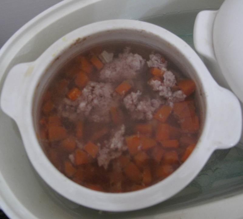 又是一个双休日,每当双休日妈妈都会亲自给宝制作辅食吃,这次也不例外,妈妈一早交待奶奶上菜市场买菜的时候,帮宝宝买些嫩肉和根胡萝卜,妈妈准备给宝宝制作一道营养辅食:肉汁米糊。奶奶选用的嫩肉就是猪脚旁一小拓,一小拓的嫩俗称猪脚肚肉,那是猪身上最嫩的肉了,一般吃猪脚时都会吃到那一块肉;胡萝卜要求是新鲜的就可以了,妈妈今天要用到一个重要的餐具—炖锅,下面说一下制作方法: ![]() ![]() 一、买回来的肉洗净,先切成片,(这样容易剁碎)再用刀剁碎状。 ![]() 二、胡萝卜洗净,切块或切丝备用。 ![]() 三、将切好的胡萝卜和碎肉放入小盅碗里。 ![]() 四、加水,(自来水和热开水都可以)妈妈用的是热开水。 五、将加好水的小盅碗放进炖锅里,先快炖一个小时后,再慢炖一个小时,肉汁既可做好。 ![]() 六、取出一个小碗,把炖好的肉汁倒到碗里。 ![]() 七、往盛有肉汁的碗里放入米粉。 ![]() 八、在碗里顺时针搅拌成糊状。 一道即甜美又好吃的米糊就做好了,宝宝可爱吃啦,没几分钟就全吃完了,呵呵! 本作品未经作者许可不得转载,转载请征求作者意见。擅自转载使用,将保留追究其法律责任的权利! |