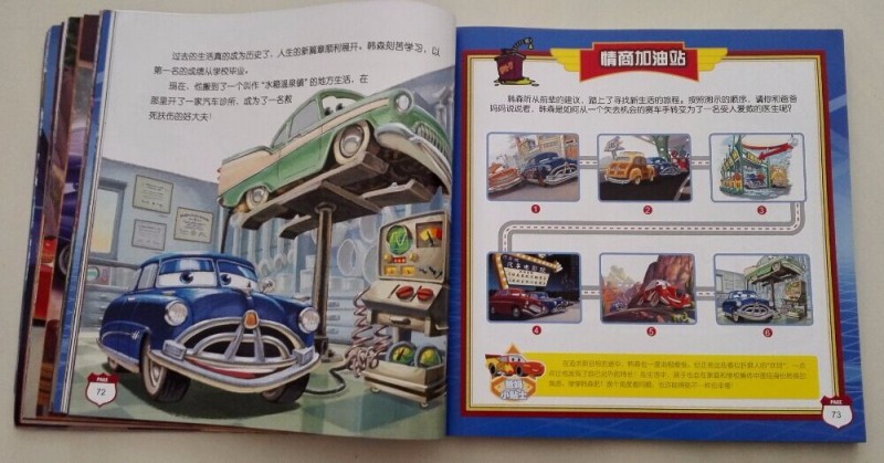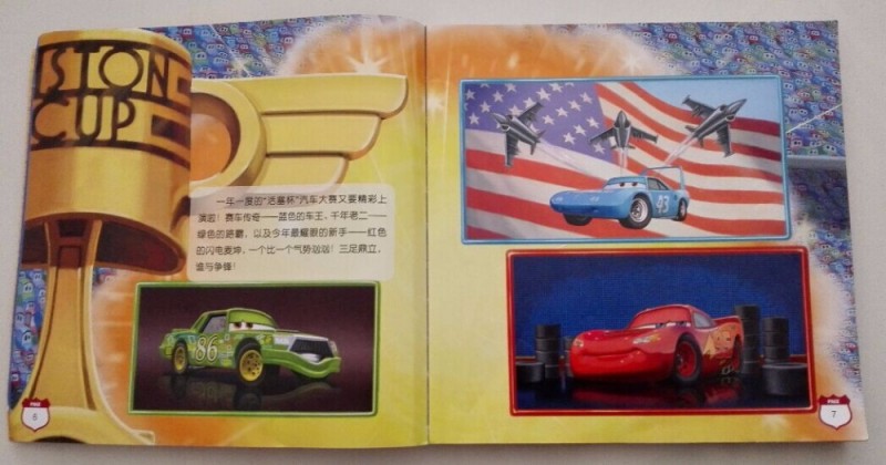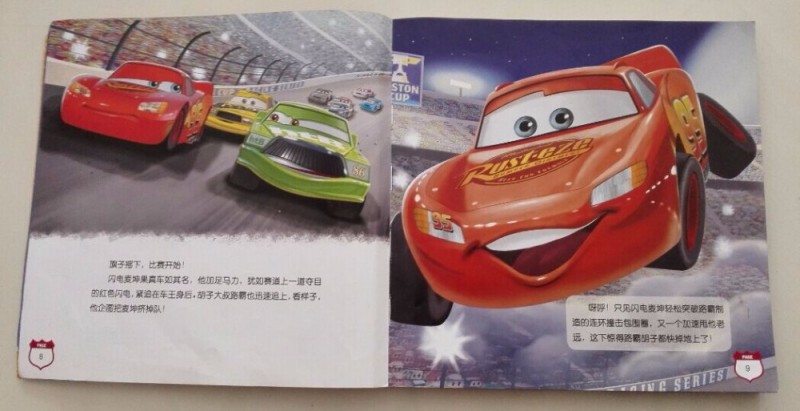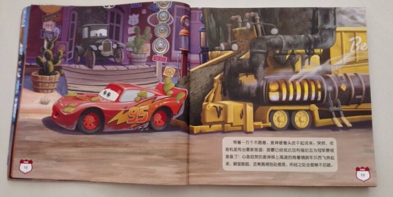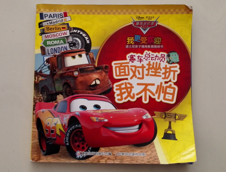 迪士尼亲子情商教育图画书之《赛车总动员》,来自上次相亲活动的奖品,收到奖品有挺长一段时间了,但一直没有机会晒,为啥说没有机会呢,且听我慢慢道来。刚收到快递后,就被小朋友们拿走了,两个抢着要看,说是最喜欢闪电麦坤了,因为看过动画片,所以就特别钟情于这本书,后来等到我有时间想拍照晒奖品的时候,书竟然找不找了,最后还是前段时间在哥哥睡觉的席子底下找到了。我怎么就忘记了小家伙每次都喜欢把喜欢的书放在自己的枕头或席子底下呢。等我找到书拿来拍照的时候,才发现书不仅旧旧的,而且还卷角得厉害,完全看不出来是收到没多久的新书,真是喜欢的书就容易变旧呀。