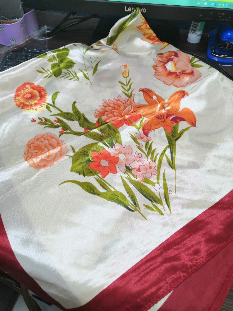 丝巾上面的花草是比较的好看的,这条丝巾是孩子是正方形的那种,放开是看着听到 ,差不多有一米长吧,看着挺好的,现在春天了,也是春暖花开的季节了,虽然我们这里还是很冷了,至少我还穿着棉袄哈,早晚还是挺凉的,中午开始知道热了。而丝巾上面都是给人一种春暖花开的感觉,看着就是觉得非常的舒服的,很多不同颜色的花,还有花骨朵,感觉寓意是非常的好的。