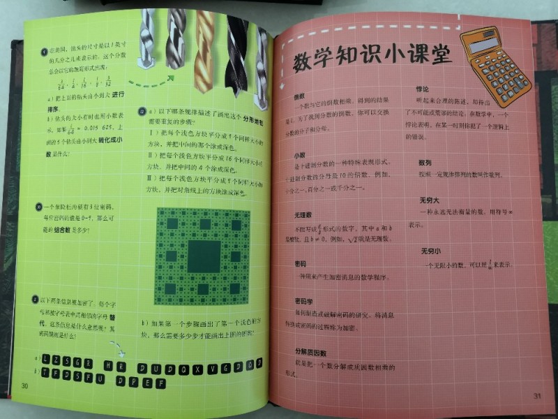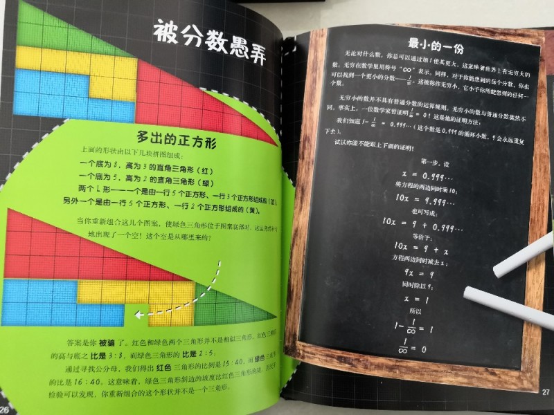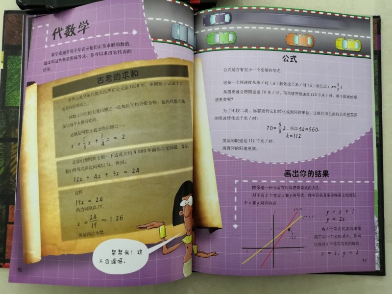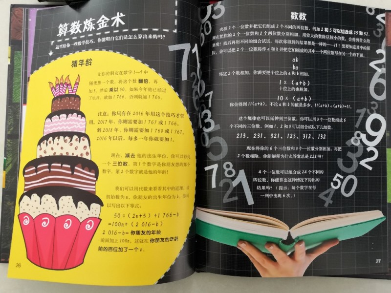 一开始真的是持怀疑态度的,毕竟,跟数学有关的训练书也是有买过的,大体的都是差不多的。收到后,大概的翻看了下,觉得挺深奥的,再后来,细细的看下去、思考,真的是觉得很值得入手的,里面不仅仅是单纯的介绍数学,而且都有拓展到很多国际上的知识点,还有一些跟数学有关的历史,虽然看着就是简单的图片与文字,但是很好理解,而且感觉不到是在学习数学,感觉是在跟着一起做些小游戏、小实验,非常的吸引人,趣味性非常的强,很能够吸引人。