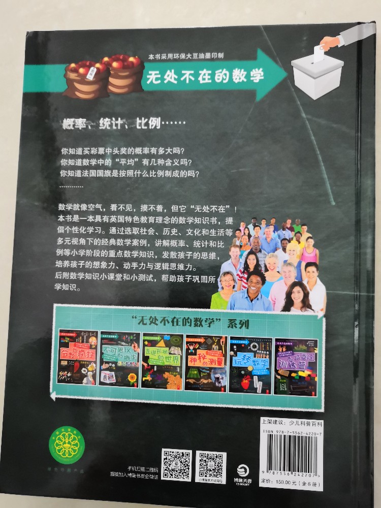 那什么,我先嘚瑟一下,第720期《“无处不在的数学”系列》本来群分享的时候,是每个人一本的,没有想到,我居然收到一套,第一反应就是发错了,果然在联系了小梦后,两天后得到的答案是,小梦就收到一本,也就是说,我的一套应该是寄给小梦的样书,阴差阳错寄到我这里来了,我那叫一个激动啊,这套数学书是适合整个小学阶段的,而我家儿子下学期就开始上小学了,这样一来,这套书真的是刚好合适的,真的是太幸运啦,谢谢小梦直接送给我了,说不用寄回去了,么么哒!这样美丽的错误,我喜欢。