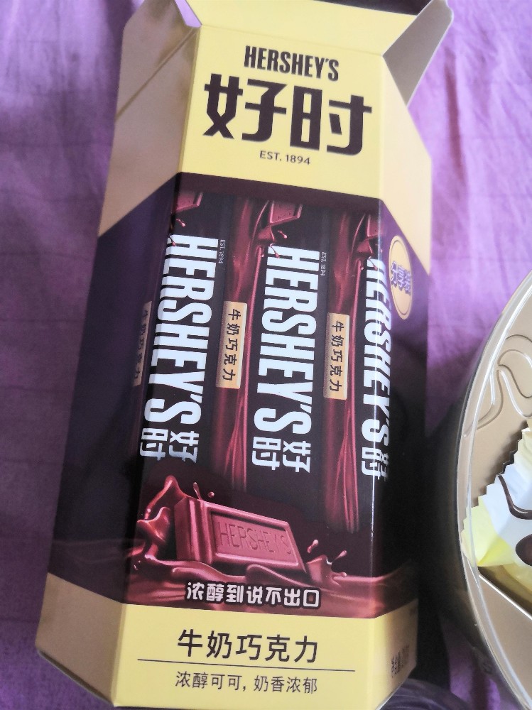 我哥知道我们也是很爱吃巧克力的,往年都是准备的各种糖果,今年准备了糖果还有给孩子买的巧克力,两个孩子看到自然是非常的高兴的。德芙奶香白巧克力,这个我们都是挺爱吃的,跟孩子说不要吃完,留些给大伯,他们也是有同意的,还是挺配合的。还有好时的牛奶巧克力,我也吃了一块,味道挺好的,这个好时的倒是买的比较的少,小奥汀还让我给巧克力拍照了,哈哈。