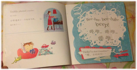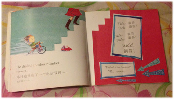 秃秃最爱的绘本名单里,又多了位‘成员’——《喂,是奶奶吗?》。刚买这本书的时候,我完全看不出它的魅力所在,甚至都不愿意多看它一眼。可是有一回,无意给秃秃看一次这本书,他对给奶奶打电话这件事感触非常深刻~~因为那段日子小家伙不能经常看到奶奶,所以时不时的就要给奶奶打个电话,再看到这本书、听到里面的内容,一下子就记住了书名,而且还经常会点着名的要看它!