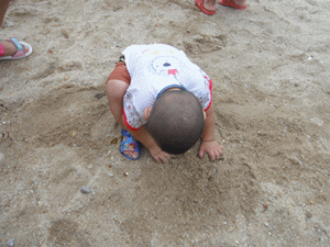 玩到后面,竟然用沙子揉眼晴,还把沙子放进嘴里吃,若不是我及时发现,眼晴和肚子进沙了可不好办,而这时的他脸上、身子、裤档、四肢都沾满了沙,也该是我们带他回家洗澡的时候了。 本作品未经作者许可不得转载,转载请征求作者意见。擅自转载使用,将保留追究其法律责任的权利!