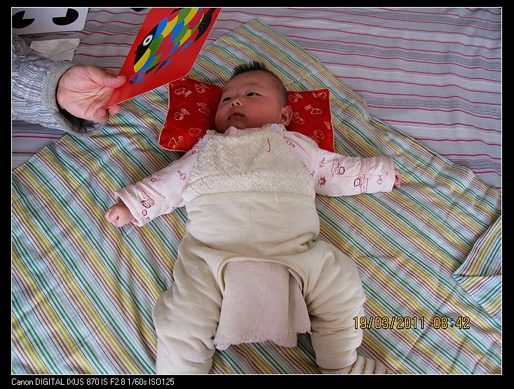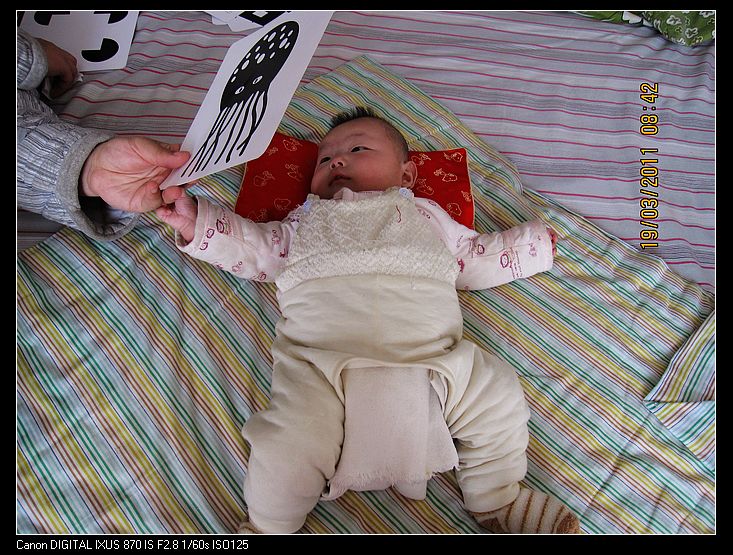 ![]() 第一次看的是黑白色的,他表现出浓厚的兴趣,看到图片就会露出笑容,我边让他看边告诉他是什么动物或者图形,他似乎很认真的听着,但是看的时间不是很长。视觉训练卡的说明上写着每次让宝宝看10秒钟,我的宝宝在两个月的时候也仅仅满足这个条件,时间长了他就会把脑袋转向一边。 ![]() 慢慢的随着年龄增长,他专注的时间越来越长,视觉训练卡也由黑白过度到了彩色。如果他不愿意躺在床上了,我就会拿出视觉训练卡给他看,边看边告诉他是什么颜色和图形,他就会欢快的露出笑容还会蹬着小腿。现在,他对训练卡有了记忆,每当拿出他看过的卡片,看一会就会有些不耐烦,如果是一张他从来没有看过的卡片,他专注的时间会很长,也会很安静的听我告诉他是什么,甚至他还会用手去触摸卡片。也许,他已经不满足于仅仅通过视觉和听觉来感知卡片的存在,他也想通过触觉感知我对他的讲解。 ![]() ![]() 宝宝现在马上要4个月了,到了该听故事的年龄了。我想,如果我每天给他读一段故事,对他是有很大帮助的。我希望宝宝将来也会是一个爱看书的乖宝宝。 本作品未经作者许可不得转载,转载请征求作者意见。擅自转载使用,将保留追究其法律责任的权利! 评分记录