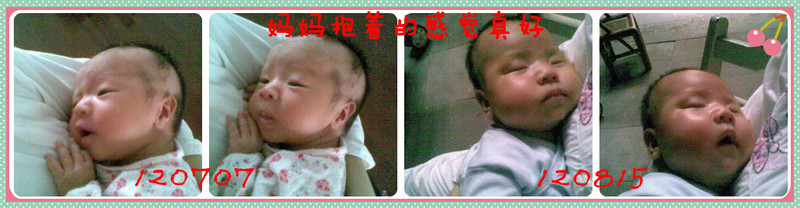 ![]() 回家以后的小小皮球很乖,不吵也不闹,除了睡觉,醒着的时候都在笑,尽管也许她并不知道 ![]() ![]() 一个月的时候就表现出了不一样的运动天赋 ![]() 在家里坐了四十天月子以后,我去了妈妈家。继而有了小小皮球的第一个“暑假” ![]() 小时候是不是都喜欢黏着妈妈呢,我也特别喜欢抱着她,感觉幸福满满的 ![]() 在婆家的时候,有时我可以拒绝吃很多,但在妈妈家就不可以了,爸爸说,你不为自己也要为小小皮球多吃点啊!于是,在出生时4斤6两的前提下,两个月以后,小小皮球有九斤了。 我叫她九斤姑娘可能真的是怀孕时心情特别好,所以小小皮球也特别爱笑,一逗就笑 ![]() 一百天的时候,本来想去影楼拍照的,后来还是决定在家自己弄!现在觉得真是一个明智之举啊! ![]() 我住在妈妈家的那两个月里,老公每天都会去看我和小小皮球 ![]() 我爱在她睡着时偷偷的拍照,我觉得这张特别像小新,你们觉得呢? ![]() 因为在温箱里要在头上输液,小小皮球的头发被剃得东一块西一块,好难看啊,我就干脆给她剪了个光头,一起重新长算了 ![]() 日子过得好快,转眼就到冬天了,小小皮球戴帽子喽 ![]() 真的应了那句话“女儿是爸爸前世的情人”,小小皮球就喜欢跟老公玩 ![]() 这个帽子还是我以前戴的,小小皮球戴起来跟姐姐特别像哦。 ![]() 小小皮球的第一个三十晚就是这样在床上度过的 这还是我们第一张“全家福”呢![]() 在妈妈家的乐趣就是我和妈妈两个人逗小小皮球玩 ![]() 听说色彩鲜艳的海洋球可以刺激宝宝的感观,我就给她买了这个小帐篷和海洋球 ![]() 让我郁闷的是,大家都说小小皮球越长越像奶奶了 ![]() 时光荏苒,小小皮球一岁啦! ![]() 大家看看是不是跟刚出生时变了好多呀?女大十八变哟! 最后来一张大片,是过生日的时候照的,我特地选了这个图案 ![]() 辛苦各位亲了,这么长的帖子能看完,真不容易呀!