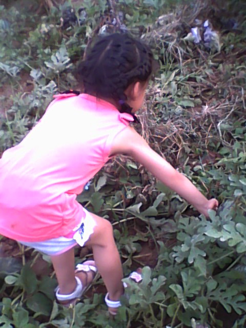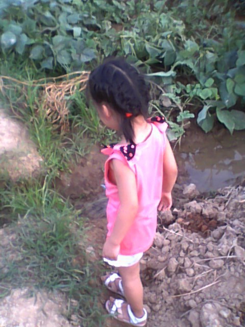很早就盼着暑假的到来了,每次电话那边爷爷奶奶说西瓜要熟了,等你们回来就可以吃了,于是,孩子们更期待着一睹那些瓜儿们的“芳容”。我们大人没什么,对于从没看过这些的熠则很新鲜,很有吸引力了! 7月17日那天,我们乘公车颠簸一个多小时赶到时,已是黄昏,正好乡下的傍晚,晚风习习,躲开了城市的高温,放下行礼,熠就拿着姐姐往瓜田跑去了。 从这条乡间水泥路下去,一大块菜地就是了!两姐妹,老远就看着这块地了! ![]() 下去可不容易了,这可是一条才30多厘米而又长了些杂草的小土路,而且是下坡,有些陡而窄。熠去不知“天高地厚”的带路走在前面!姐姐急着抓住。 ![]() 看看,路不好走吧,还不让人扶着的熠可小心了! ![]() 看到西瓜了,好多个呢,瞧瞧这一个,就在眼前呢。不大不小,两人一人一半,正好! ![]() 熠忍不住下田,自己去寻找起来!其实不难找,在那些枯草下面盖着全是呢! ![]() 不只有西瓜,还有白香瓜呢,够我们吃了! ![]() 两姐妹有什么有发现吗?原来的是看到前面茄子树下的紫茄子了! ![]() 那边还有什么啊?看!是玉米呢,多辛勤的爷爷奶奶,种了这么多好吃的,就等着咱们回家呢! ![]() 这是西红柿!就种了三棵,这东西很容易东倒西歪的,爷爷说再难种了,而且很容易就烂了,有好几年没种过了,但听说熠喜欢吃,再难也不怕了! ![]() 今年夏天,是我们这里少见的干旱年,都有一个月没下过雨了,为了让自己的两个孙女吃上自己种的果蔬,爷爷奶奶每天不早上五点起床挑水浇水,菜地绿绿的,一派生气盎然。自然产量也不错,我们娘女三个每天吃得撑撑的了!有了这些新鲜的东西,饭都要少吃一些了! 本作品未经作者许可不得转载,转载请征求作者意见。擅自转载使用,将保留追究其法律责任的权利! |