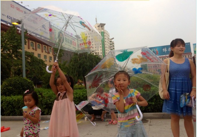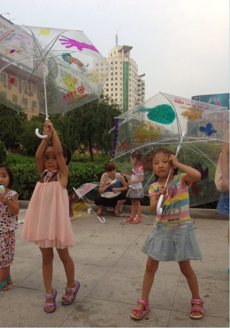 炎热的天气里,哪儿都不想出去。宝贝绘画班要举行雨伞节活动,孩子十分期待,看看外面大大的太阳,咬咬牙带她朝活动地点出发。