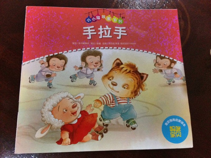 阅读日期: 10月3日 参与人员:外婆和宝宝-- 阅读绘本:《小小猫系列:手拉手》 绘本特色:通过小小猫的几个故事片段,让小朋友们知道出门要通过手拉手的方式注意安全,同时手拉手也体现了伙伴之间的相互友爱。 阅读心得: 今天这本《小小猫系列:手拉手》是外婆给蛋蛋讲的。我觉得让家里的各个家庭成员都给蛋蛋讲同一个故事,有可能会因为每个人的讲故事风格不同而让他有不同的收获~~~ ![]() 这本手拉手,说的是小小猫和妈妈出门过马路时手拉手,不乱跑。在超市里,小小猫也和妈妈手拉手,不在超市里跑来跑去。小小猫和爸爸去游乐场坐飞船,他害怕了,也抓紧了爸爸的手。 在溜冰场,小羊摔倒了,小小猫上前拉起了小羊。小小猫还和伙伴们手拉手做游戏。当夜幕降临,小小猫和爸爸妈妈手拉着手一起看天上的星星。每一幅手拉手的画面都很温馨,都告诉小宝宝们,出门在外要手拉手注意安全。 蛋蛋特别喜欢这本书的第一页,小小猫和猫妈妈过马路。因为这页图片里有一盏交通信号灯,最近这个时期,他特别喜欢和我们玩红绿灯的游戏,游戏内容源自于另一本书。所以,对于书上凡是出现了红绿灯的,他都相当感兴趣,特别喜欢看。