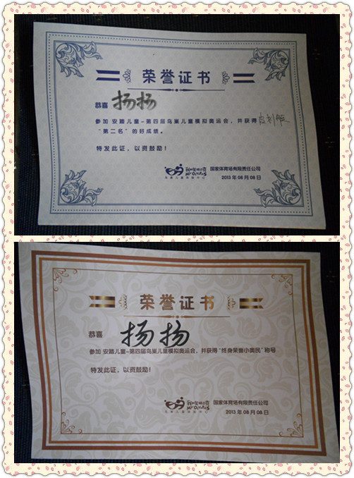 真不错啊,宝宝还得奖了,很棒的孩子!