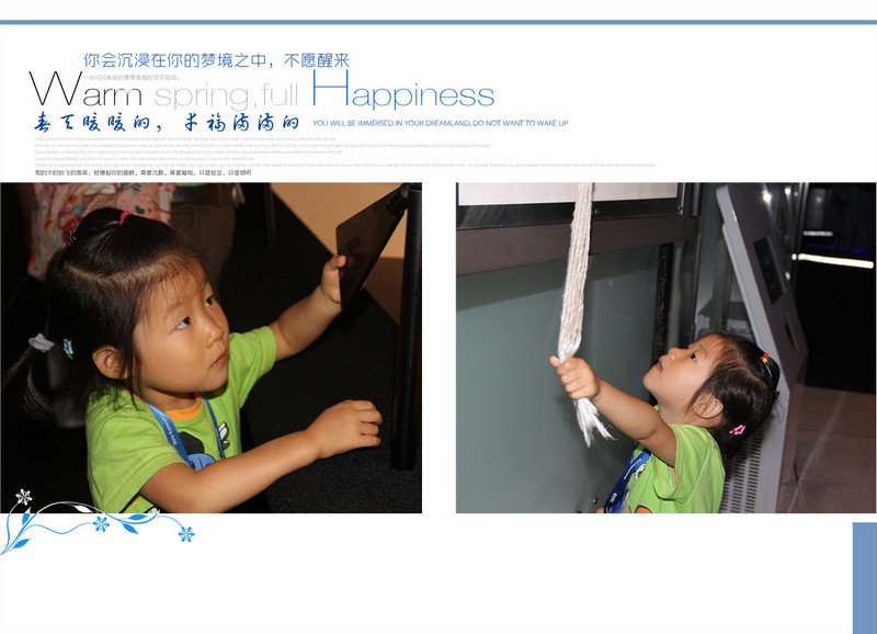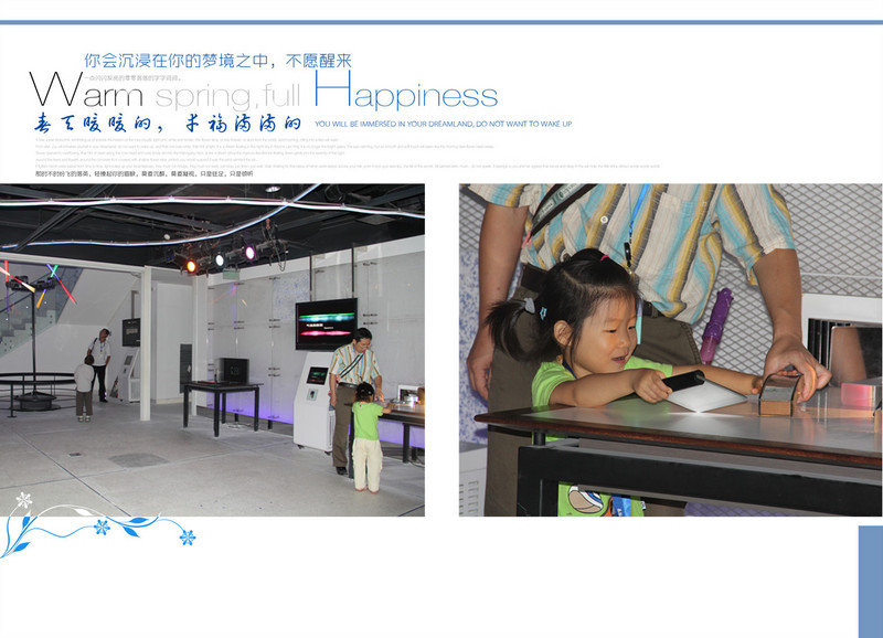 ![]() 我们先体验一下光的神奇!! 彩色的光,人的影子居然呈现出了三种颜色,够炫吧!! ![]() 看看这些装置,不好意思地说,俺都看不懂,反正都是跟光有关啦!关于物理,还是让闺女爸带着小家伙体验吧,妈妈当摄影师好啦! ![]() 篮球也跟光有关?戴上个眼罩类的东西,投篮就偏了。有时候亲眼见到的也不一定是真的呀!! 这个装置能让人的脸突然消失,我们体验了一把,还真是,突然闺女爸的脸就不见了,只剩一道白墙。不过要在两只眼睛视力相当的情况下哈。闺女爸就做不到! 这个叫“爸爸的鼻子”,上下错落着看,突然就只见爸爸的大鼻子了。也不知道闺女看到了没有。 这是个啥?转动圆盘,给你不一样的视觉效果。闺女够不着,爸爸抱起她来看! 马尾辫,拉起马尾,有一道影子让白纸中间多了个隔断。 ![]() 妈妈以前物理没学好,而且现在还是不学无术,反正就当稀奇看看,也不想探究原理了。等闺女大了她自己去探索吧!!希望闺女爸到时候能给闺女指点迷津。 看3D电影啦。这还是闺女第一次看电影呢,更别说是3D的了,小姑娘戴着大眼镜好玩哈!! 3D电影片段说的是海底世界的动物,那叫一个清晰震撼,仿佛伸手能摸得到一样!!小姑娘开眼界啦!! 上二楼吧,还有好多精彩的实验哦!! ![]() 抹上一点盐再杯子边摩擦,能听见声音哦。杯里的水量不同声音也会不同。 通过摩擦能让水盆里的水翻腾。本来平静的水面,通过闺女的摩擦泛起了阵阵涟漪。 ![]() 这里每天不同时段都有科学表演,今天我们就赶上了一个。还是个科普作家呢,给我们表演了半个小时吧。大小观众众多呀!! 现在开始参观声音的科学。声音不仅能听,还能看哦!通过拨弄琴弦,能看见声波的震动!! 听一听这个玻璃乐器里的声音,每个玻璃管里都能发出不同的声音哦! 通过打击乐器,看到声谱在屏幕上跳跃。 ![]() 声音的走势。顺着箭头走,就能听到奇迹。 这里每根柱子里都能发出不同的声音:有机场的声音、有工地上的声音、有飞机飞过的声音、有小桥流水的声音、有鸟的叫声...什么声音都有,只需要侧耳倾听! 1:00还有个科学实验,叫“会飞的种子”,通过叠纸,叠出不同的种子形状,然后抛向空中,模拟他们飞的样子。 闺女正在叠纸呢。 好啦,全部参观完毕,到出口打印照片喽。进来的时候我们三个人每人发了一个卡,每个卡都能免费拍张照片,还能打印带走留作纪念!全都是免费的哦!! 参观完索尼探梦,小姑娘还不肯回家,还要在朝阳公园里玩,无奈,妈妈只好拿出准备好的鸭舌头讨小家伙欢心了。吃上美味的鸭舌头,我们回家啦!!愉快的科学之旅结束喽!! 本作品未经作者许可不得转载,转载请征求作者意见。擅自转载使用,将保留追究其法律责任的权利! |