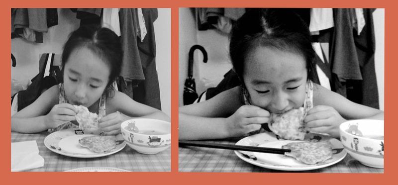 这边小饼都出锅了,那边绿豆粥也熬开了花。关火,盛出晾上的功夫,门开了,小荃欢跳着进来了,时间怎么掌握得那么好呢? 荃爸和荃一致认为这饼很好吃,嘻嘻,目的就达到了,样子不好看,形状不规则都是可以原谅的问题,是持续改进的方向。 之前做过一次只放了土豆丝的,土豆的味道绵软香浓,这次加上洋葱,多了些脆甜,同样很香。荃喝了半碗粥,吃了两个小饼,还想吃,“你在幼儿园没吃晚饭吗?” “吃了呀,可我又饿了。” 那也差不多就行了,7点多了,吃多了积食可不好。 嗨,什么妈妈呀!