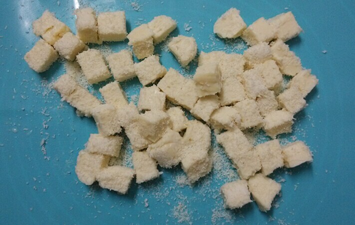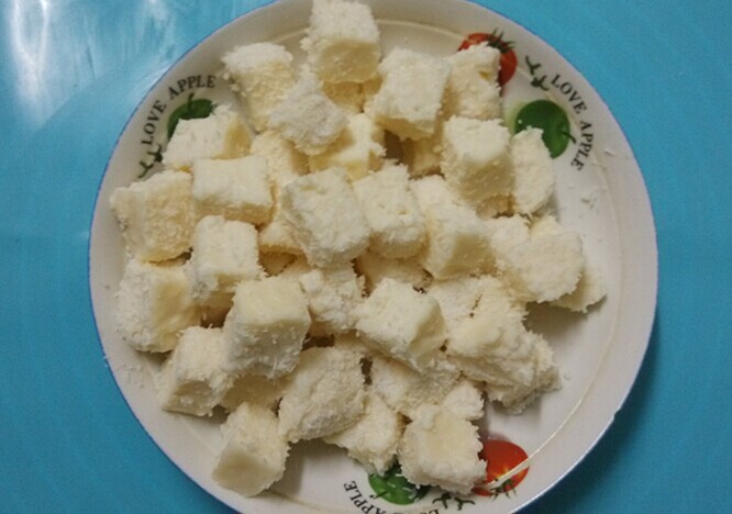 ![]() 奶油,一般都是用在甜点里的,所以我就搜了一下需要用到奶油的甜点,最后找到了这款名为“椰蓉牛奶小方糕”的甜点,选择尝试这个的原因主要还是方法简单,这样失败率比较低,刚好需要用到的奶油量和我剩下的差不多,这样就最合适了,奶油既不会不够用也不会多余导致浪费。而且看到做出来的成品非常美味的样子,就非常想试试了。 ![]() 材料准备: 牛奶: 240ml 淡奶油:100g 淡奶玉米淀粉(粟粉): 40g (家里没有淡奶玉米淀粉,我使用的就是普通的玉米淀粉,口感也挺不错的) 白糖: 30g 椰蓉: 少许 ![]() 1.将三分之一的牛奶和玉米淀粉混合搅拌均匀。 ![]() 2.找一个容器,在底下铺上一层椰蓉。 ![]() 3.把剩下的牛奶和白糖倒入奶锅,淡奶油也一起倒入奶锅,边加热边搅拌均匀 ![]() 4.奶锅里的奶液煮沸冒泡时 ![]() 5.将混合好的玉米淀粉和牛奶液快速倒入煮沸的奶液中,再快速均匀搅拌,这样锅里原本流动的奶液会变得越来越黏稠,略有凝固的时候就关火。 ![]() 6.把凝固的奶液再搅拌好倒入刚才铺好椰蓉的容器盒子里,盖好盖子放冰箱里冷藏。食谱上是冷藏过夜,而我当时是上午做的,所以到了下午就拿出来了。 ![]() 7.冷藏后从冰箱拿出来倒扣在案板上 ![]() 8.切成方形,再均匀洒上椰蓉。 ![]() 9.美味的椰蓉牛奶小方糕成功了。一股浓浓的奶香和椰香味,软软的吃到嘴里有入口即化的感觉,口感非常不错,不过一次性不能多吃,容易腻,毕竟是甜点嘛。后来吃剩下的我用保鲜膜包好放进冰箱的冷冻柜,这样再拿出来吃的时候,发现口感有点像冰淇淋了,味道更好。两宝更喜欢吃冷冻后的。 ![]() 下午宝放学回来,我就把上午做好的小方糕拿出来切好再洒上椰蓉,我还在切的时候小家伙们就迫不急待地想吃了,大宝一口气吃了好几个,还嫌我切得太小个了,说妈妈应该切大一点,大一点吃得过瘾,真是个小吃货。 ![]()