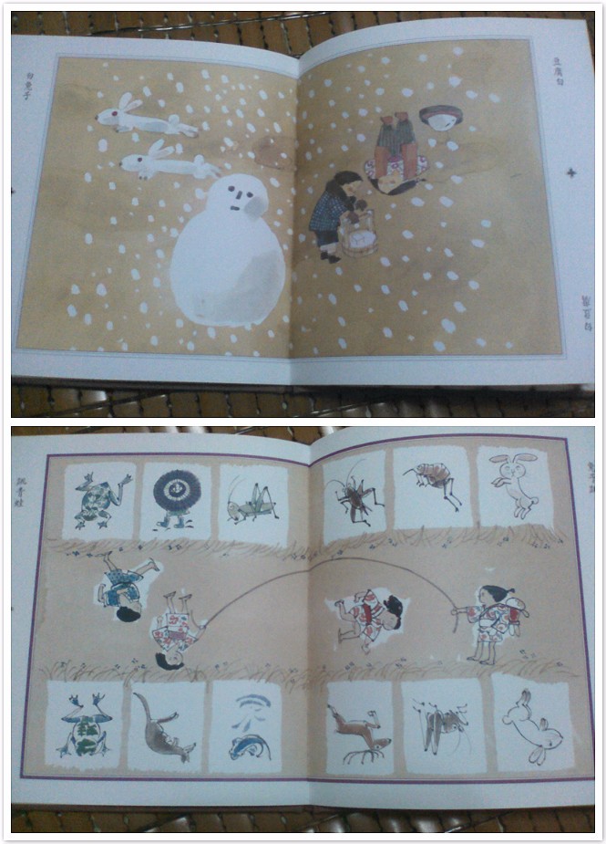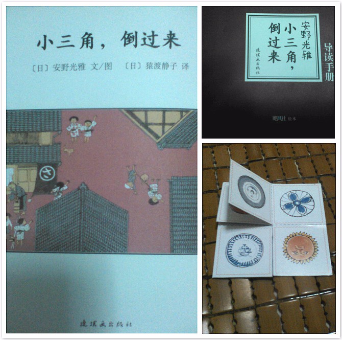 ![]() 《小三角,倒过来》是安野光雅以日本广为流传的歌谣为基础所创作的绘本。 歌谣有点像我们小时候玩的正反话游戏,重复的语言增加了语言的趣味性,从而锻炼了孩子的语言能力。让我有些惊喜的是它还附赠了一本导读手册和一个小手工。 手工游戏卡既可以锻炼孩子的动手能力,又练了嘴皮子。 导读手册能够帮我们理解书中内容,因为歌谣本身文字很少,图画占的篇幅大,且包含的信息量很大,如果没有文化基础,很多图画是难以看懂的。比如下面这张图,仅凭我的知识,只知道是鱼虾,蝌蚪青蛙,哪里知道什么爪鲵、平鱼、秋刀鱼。 ![]() 这还仅仅是自然常识,文化方面的内容就更多了,所以出版方很贴心地配了导读手册,宝宝很喜欢,经常指着导读手册问我,这是什么那是什么。导读手册后面还准备了一些适合各年龄段的亲子游戏,可以边念童谣边做游戏,增进亲子感情。即使是刚出生的小婴儿,妈妈也可以边念童谣,边和宝宝互动做游戏。所以这本书从0岁就可以开始看了。这几年看到的好书推荐越来越多,真后悔自己没有早一点意识到阅读的重要性。 书中的每一页画面都是可以倒过来看的。看书的时候不停的倒过来倒过去,宝宝也觉得很有趣。 ![]()