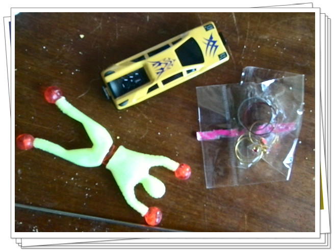 这些都是玩博会的礼物啊,我们都是笔,2个音乐光盘,还有一个竹蜻蜓,你们是亲子区的吗。