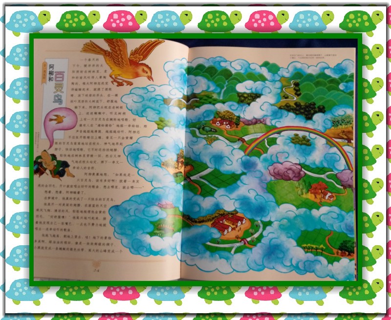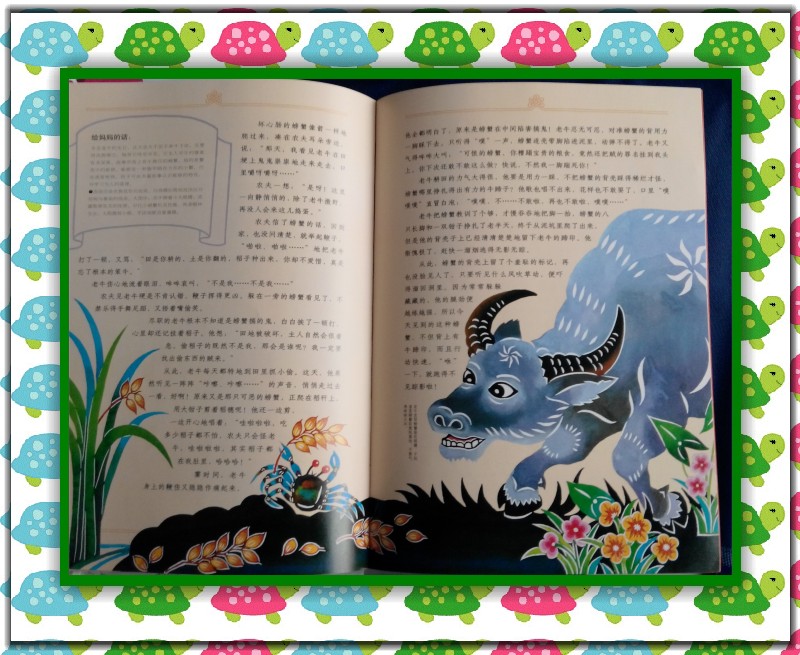 地带试读活动中恰好有《最美最美的中国童话》,我就参加了,看看这套书到底有什么不一样的地方。等我收到书的时候,我真的是惊呆了:我的梦想实现了!我收到的是11月的故事上,这本书有十个故事,最最重要的是故事情节都很完整!在排版的时候是按照每天一个童话故事来排版的,老公戏称“中国版的一千零一夜”,虽然没有一千零一个故事,但是这套书总共收集了362个源远流长的民间故事,而且故事中间穿插的配图也饱浸传统文化的精髓,这些配图是从传统年画、剪纸、皮影、刺绣、壁画、雕塑石刻中汲取技法,以毛笔、宣纸细细描绘的,让孩子在阅读精彩故事的同时,感受到中国传统文化的博大精深。