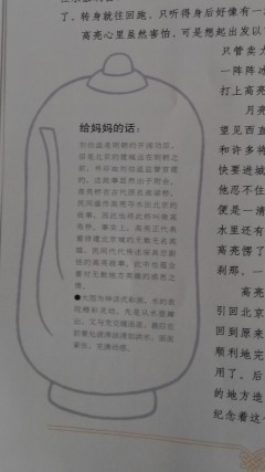 这本书的精彩不是我三言两语能说得清的,在每个故事中编者都配了一段给妈妈的话,是对故事的知识拓展,有利于阅读妈妈的“知识卖弄”,呵呵,而且每段话都被装在不同的“容器”中,这也吸引了宝宝的眼球,宝宝指着水壶问“妈妈。这是什么呀?”