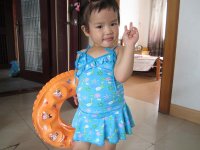 在大姨家去游泳前照的,齐对这次游泳印象很深刻,现在还能娓娓道来。从下水时的害怕哇哇大哭,到一点一点的推开我自己在水里扑腾,在水里都不肯出来,玩了俩小时,回来路上就睡着了,现在想来很趣味十足。每次洗澡她怕我水弄她眼里,我就问你游泳水弄脸上怎么办啊,她声情并茂的噗噗甩甩头