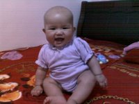 瞧,齐小时候果然是个十足的光头,外公刚给齐剃了个头,妈妈给做个纪念,六个月的齐做的有模有样了