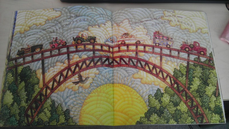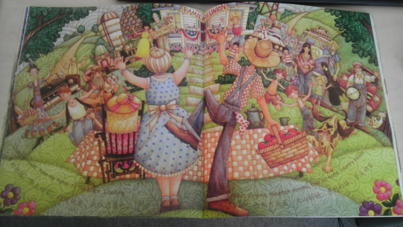 ![]() 首先非常感谢地带和双螺旋童书馆给予的这次试读的机会! ![]() 约翰.丹佛是美国著名的乡村音乐歌手,他的音乐充满了对自然的热爱。这首《乡村路带我回家》也是非常经典的一首曲目。收到书后,打开一开,哇,色彩斑斓的乡村,配上这首歌的歌词,将一个温馨的大家庭的聚会表达的淋漓尽致!如果单纯的只是听歌,会觉得好听,如果看着这本书再听,立马会跟着一起唱起来,这就是这本书的魅力所在了。下面,我们一起看欣赏一下吧! ![]() 首先是交代了故事发生的地点,西弗吉尼亚。这是一个像天堂一样美丽的地方。从图中可以看出,蓝天,白云,田野,村庄,一幅生机勃勃的乡村景象。有人开着小车行走在乡村的路上,车里传出美妙的音乐…… ![]() 高高的蓝岭山,清澈的谢南多亚河流,又有一群人乘车行走在乡村的路上,车里传出美妙的音乐…… ![]() 古老的大树,年轻的生命,可爱的动物们,瞧,又来了一车人,他们正开上石桥,穿过河流,车里传出美妙的音乐…… ![]() 看到了吗?刚才的小车,行驶在不同的乡村道路上。这是一幅乡村的全景图了。远处层峦叠嶂的山脉,郁郁葱葱的森林,近处,果树上挂满了鲜红的果实,地里的蔬菜已经成熟,玉米,西瓜,桃子,西红柿,好多种水果啊!还有小朋友们喜欢的小羊,小猪,小鸭子……哇,这是多么美的一幅乡村景象啊! ![]() 这是什么?有人开着拖拉机?远处还有火车呢? ![]() 没错,这是拉矿的火车。看到下面的人了吗?他们开着三轮车,正在经过一个加油站,是油不够了吗? ![]() 天黑了,这些一闪一闪的是什么呢?对了,这是萤火虫。是不是非常漂亮呢?就像天上的星星一样!这么晚了,还有人在赶路呢!这幅图画也让我想起了我们晚上赶路的场景,何尝不是如此呢! ![]() 他们借着月亮和萤火虫的光芒,正穿过果园呢!园子里的果子都是丰收的景象了,想家里的果树,此刻是否也已经是果子挂满枝头了呢? ![]() 太阳升起了,大家逐渐的都开到一起了,看,他们正在通过一个大桥呢! ![]() 他们这么着急的赶路,是为了去哪?是的是的,他们是为了回家! ![]() 终于,大家都回到了家,聚在了一起。这是多么美妙的一个家庭大聚会啊! ![]() 大家在一起开心的谈论着…… ![]() 小孩子们在一起玩的不知有多开心…… ![]() 这就是家的感觉! ![]() 书的最后,附上了整首歌的曲谱和歌词,以及这个绘本的创作来源。 一边听着这首歌,一边写完这些文字,已是泪流满面。对于我们这些异乡的人来说,听到这首歌,尤其感动。看到书中乡村的场景,就像回到了童年的时候,和几个小伙伴一起去放羊,在乡村的路上奔跑,摘别人家地里的西瓜,在小河边嬉闹,所有的一切,都那么熟悉,那么让人难忘!而到了歌的高潮部分,就忍不住的跟着唱起来,那种思乡的情绪不由自主的就跟着来了。看着书中的人们,开心的驾车,焦急的回家的那种心情,我们太能理解了。每年春运,每次回家,都是那种激动又着急的心情。整首歌曲,简单的歌词,却勾勒出了一幅美妙的乡村图画,几句高潮,就把人家的思乡情绪带动了出来,这是一场美妙的关于大自然和亲人的庆典,聚会的最后还有大篷车和乡间舞会,这就是乡村,这就是音乐,这就是家庭! “country roads, take me home,to the place I belong……”,跟着一起唱吧,愿歌声带走我的思念,送给家乡的亲人们! 本作品未经作者许可不得转载,转载请征求作者意见。擅自转载使用,将保留追究其法律责任的权利! 个性签名