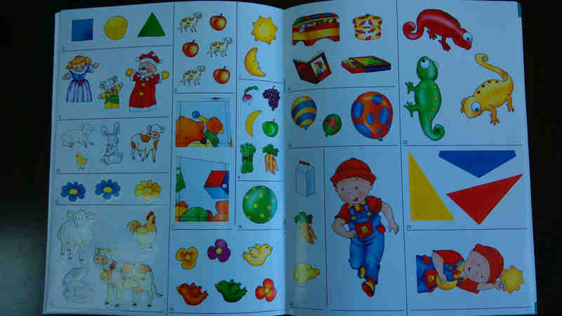 当我把这本书拆开的时候,身边有17个月的添翼和3岁半的乐乐。他们看到新书来了都非常开心地凑上前去。发现这本书给不到1岁半的孩子阅读是太深奥了,而3岁半的乐乐阅读,每一个题目都能正确的回答上来,看样子,这本书阅读的最佳年龄还是在3岁左右。因为半年前,给乐乐看了一本类似的书,难度和这本差不多,乐乐回答还略微困难,而现在,给上了幼儿园的3岁半乐乐阅读,他每一题都能正确回答上来。 但尽管如此,他还是对这本书产生了浓厚的兴趣,在我身边呆了好半天,直到把书完整的看完。乐乐和添翼都超级喜欢贴纸,上次的贴纸书送给了乐乐,结果每天晚上临睡觉前都要看电视的乐乐居然每天贴一页贴纸,把那本蓝精灵贴纸书贴得非常完美。当然,还有乐乐妈妈的功劳。而这一本书中的贴纸我翻开来看了看,发现不亚于那一本书。而且,书中还有一些拿笔画画的地方。这对于3岁的孩子来说,还是有一些困难的。因为它要求吧画画得很直,而且还要再空的地方涂颜色。
