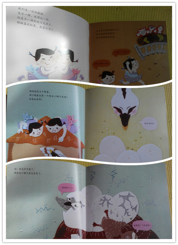 给盼盼讲了一遍这本书,盼盼大概就可以记住了,用盼盼的话来讲这本书。 盼盼说“这是一个长的一样的姐妹,姐姐喜欢红色,妹妹喜欢蓝色,她们要去动物园,姐姐没有妹妹跑的快” “她们在这里看鸭蛋,她们在猜那个鸭子会先出来,哦,我是第一个,我是第二个”盼盼用手指着说。