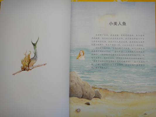 这几天我们一直在读这本童话书,大卫一边听,一边笑,有的时候还会有些紧张的样子,也不知道是为什么,好像很入迷的样子。第一个故事,小美人鱼,大卫就对这个美人鱼不是很明白,因为这不是他第一次接触到童话故事,问我,这个阿姨为什么是这个样子的,我给他讲了好一会,也不知道大卫他能不能明白,我想还得等他再大一些的吧,也许就会自己明白的。故事的结局非常好,王子和公主一起向高远的天空飞去。大卫问我,他们是坐的飞机吗?呵呵