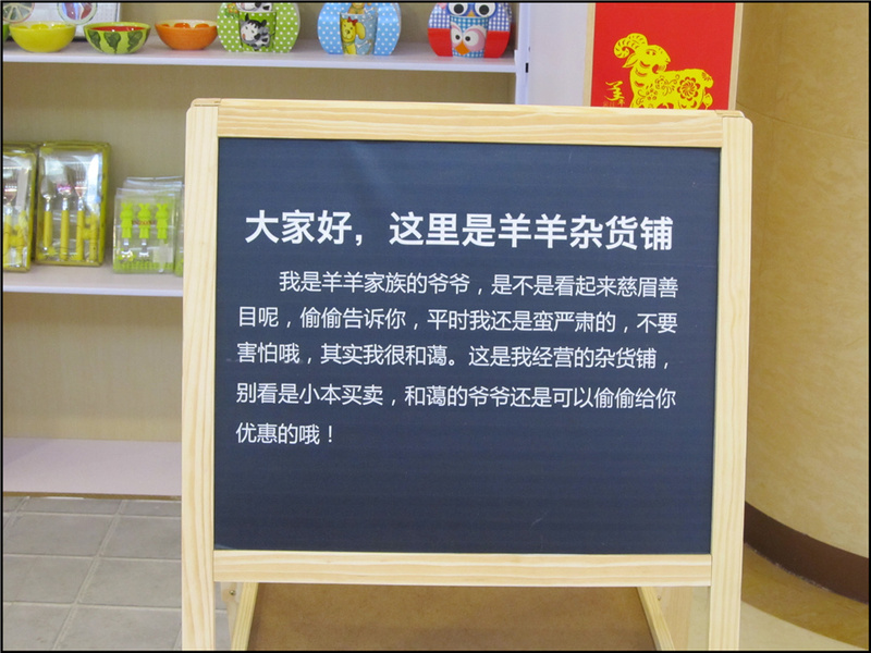 2015年是什么年?就连小朋友都知道的,是羊年,那么今天由Aric带着各位叔叔阿姨、哥哥姐姐、弟弟妹妹们,来一场寻找羊羊家族之旅吧,让我们一起做客羊羊家族,体会羊年的快乐与温馨。准备好了吗?那么请吧,跟随着Aric的步伐来欣赏羊羊家族的羊咩咩爷爷和奶奶,以及羊羊家族小辈们的工作、兴趣和爱好吧,相信这会是给你带来快乐的旅程,也会让你看到一个全新的、不一样的、温和又善良的羊羊们。 首先我们来到的是由羊羊家族爷爷咩爷的羊羊杂货铺,咩爷的性格比较倔强哦,所以又被称为倔老头。咩爷看起来非常的严肃,实际上他的性格是很和蔼的,也深受小朋友的喜爱呢。他开的羊羊杂货铺品种多样化,什么家庭用品啦、学习用品啦、吃的喝的玩的用的,只要你想要的,都可以在羊羊杂货铺中见到。Aric小朋友看到了许多他想要的玩具,可惜咩爷回家吃团圆饭去了,我们也得理解不是?毕竟这是过年了嘛。