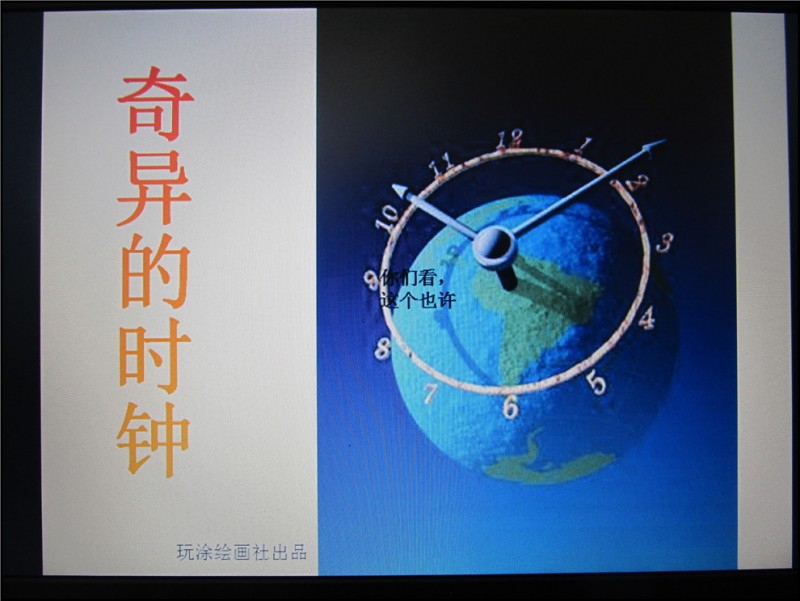 Aric从小就有几块自己的表,都非常可爱又漂亮,但是老公却认为那种表不适合小孩子看,因为就像大人的表一样,以旋转长短弦的方式来看时间。老公认为Aric比较适合电子表,直接告诉孩子是什么时间。不过事实证明,我做的是对的,因为Aric到现在,已经认识了表,哪怕转到了不在数字上,Aric也可以根据左右的数字来看出准确的时间。而如果用电子表,反而让孩子没有了探索的欲望。 这节创意绘画课,老师就带着孩子们去认识了奇异的时钟。训练目标:1、了解方圆的变换;2、知道如何添加细节;3、拓展想象力;4、如何搭配细节处理。首先是让孩子们看一幅图,那是世界上最简单的时钟了。还有用蔬菜切出来的时钟、花型的等等,见到过吗?对于各种时钟的形状,也通过图片来了解一下,孩子对于时钟有了了解和喜爱后,自己就来设计一个属于自己的时钟吧。