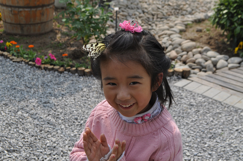 头上飞来只蝴蝶,宝贝像花仙子。