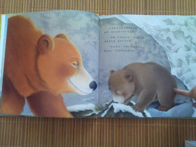 小熊经历过一个冬天的冬眠,在春天的时候跟妈妈一起走出了山洞,开心的跟妈妈一起在草地上奔跑、打滚,妈妈教会了它很多东西。在流动的溪水里捉鱼,在直立的树干上挠痒痒,还有怎么自己跟自己玩,怎么把自己给藏起来……跟妈妈在一起的时光总是那么美好幸福,以至于小熊开始担心了:妈妈,我会长大吗?长大了以后你会离开我吗?熊妈妈给了小熊一个大大的熊抱:不管你变得多么强大,多么结实,你依然是我最亲爱的小熊!