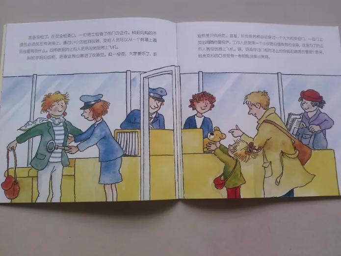 ![]() 如今,孩子们都放暑假了,一家人出门旅游成为一个不错的选择,科妮和她的爸爸妈妈也同样准备出去游玩啦。出去游玩当然要准备好路上需要用的东西啦,看科妮的爸爸正提着大包小包,妈妈在关门,而我们可爱的小主人公科妮也一副急匆匆的样子往外走,看来她真的很期待这一次的旅行呢。当然,还有另一个令她如此激动地原因,那就是这次他们要坐飞机去度假,因为是第一次坐飞机,科妮才显得如此激动。 ![]() 首先,他们打车来到了机场。第一次来到机场的科妮好奇的打量着机场内的电梯、商店、餐厅、理发店等一应俱全的设施,不由得感叹机场的庞大。在候机室里,科妮看到了各种各样的人,他们都是要坐飞机出行的乘客。趁着上飞机前的空闲,科妮还看到了好多好多的飞机。要上飞机了,直接上去就ok吗?NO,NO,NO,必须经过安检才行,凡是具有危险的物品都被拒绝带上飞机,行李中的,人自身统统都要检查哦。上了飞机后,科妮坐在了自己比较喜欢的靠窗位置,突然发现窗户很小而且是关着的,原来飞机上是不能打开窗户的啊。由于是第一次坐飞机,科妮的心里还是有些紧张和害怕的,她担心飞机会不会突然从空中掉下去。这时,科妮的爸爸开始耐心的给她讲解有关飞机的知识。看到这里,我不仅为这位父亲睿智的表现而点赞,他成功地转移了女儿的注意力,让科妮不再害怕。当飞机真正起飞后,妈妈又及时安抚了科妮的情绪,并贴心地给了她一块她最喜欢的草莓口味的口香糖。真是幸福滴一家人呢! ![]() ![]() 很快,便到了吃饭的时间了,科妮吃了美味的意大利面。之后,还和另一个小朋友一起参观了飞机的驾驶室,看着驾驶室密密麻麻的按钮,科妮显得非常兴奋,竟然有了想要操控这架飞机的想法。第一次坐飞机的过程就这么愉快的结束了,科妮一家人顺利抵达目的地,相信他们都会非常享受这个不一样的假期。 ![]() ![]() 整个故事读起来都非常流畅,字里行间都描写的非常细致,通过图文并茂的形式,将科妮第一次乘飞机过程中的细节完美地展现在我和孩子眼前。在文中,还有随书附送的双语学习闪卡:正面是英文,背面是中文,可以直接剪下来给孩子用哦。说实话,看完这个故事,更期待坐飞机了呢,希望以后有机会亲身体验坐飞机的乐趣哦! ![]() ![]() 本作品未经作者许可不得转载,转载请征求作者意见。擅自转载使用,将保留追究其法律责任的权利! |