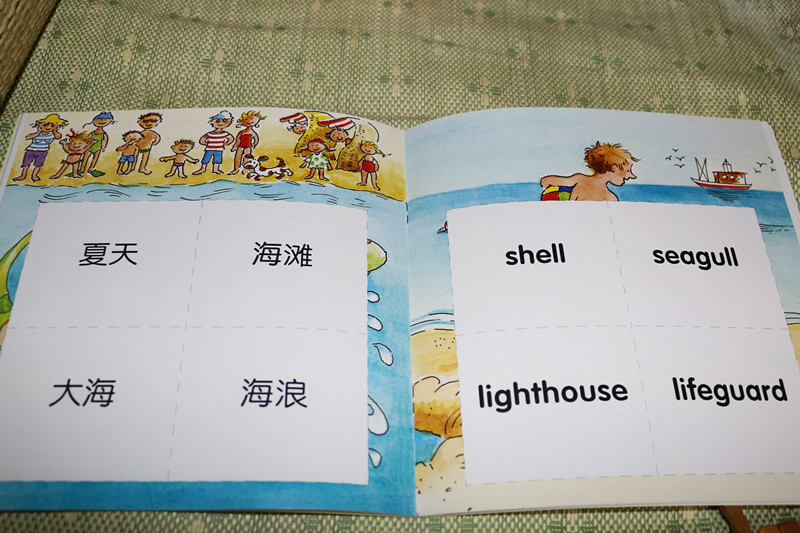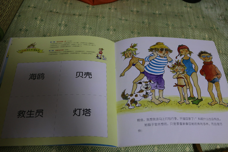 本想着将这本书能够带上,去旅游的路上看,但我这个当妈的,愣是给忘得一干二净的,sorry了闺女,下次我一定不会忘记。 这次海边之行,虽然我们没有大鳄鱼,但是闺女开心快乐的玩耍也像小科妮一样,越快的生活着,因为玩耍就是孩子的天性。 对了,此书中还有一个赞点就是里面还有一些英文单词,正面是英文,背面就是中文,既能增加英文水平,有能学习汉字,简直就是完美啊。。。