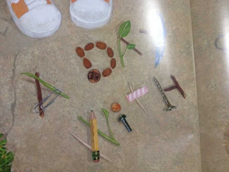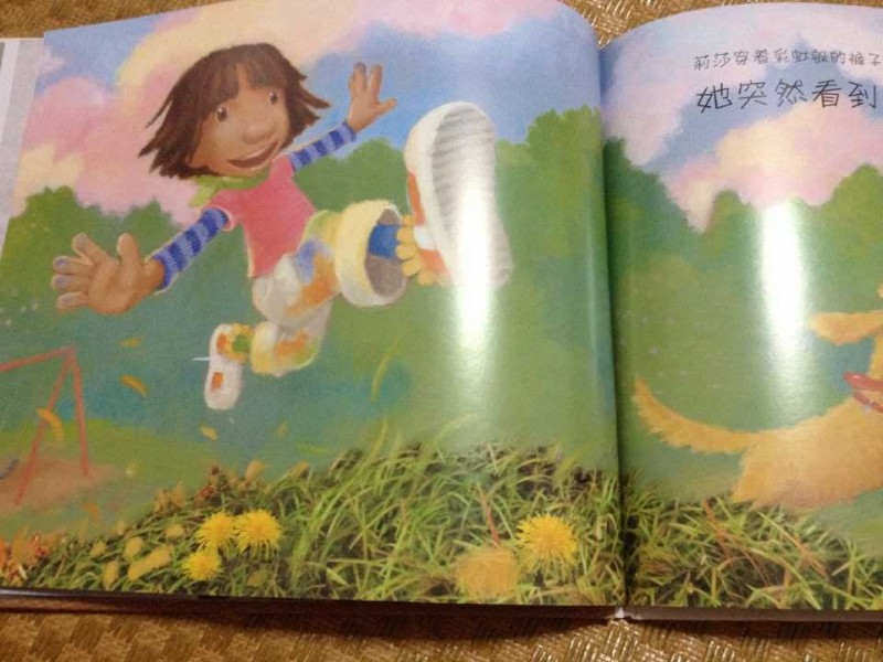 再来说说书的特点: 1、语言简洁易懂,很容易理解,里面充盈着精致的色彩词汇,而且生活化的语言更加让读者产生阅读的兴趣,阅读起来使人感到更加生动丰富。 2、书中的突出色彩二字,不仅语言上色彩词汇应用丰富,同时图片和每一个场景也都与文字交相呼应,无处不突出色彩带给孩子的快乐,同时书中的整体绘画方式采用涂鸦的感觉,更加符合儿童绘画的风格,更增加了孩子的认同感。 3、书中的创意无限,比如环衬页,就是用很多树枝、石头和学习用品等生活中常见的物品拼成的英文句子,很有创意,我家宝贝竟然可以看出其中几个简单的英文单词,出乎我的意料。同时全书的高潮部分是莉莎开动脑筋的无数创意的体现,让孩子们理解其实生活中有很多可以运用的物品,只要我们敢想敢做,必定就会创意无限呀。