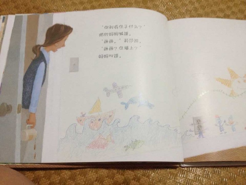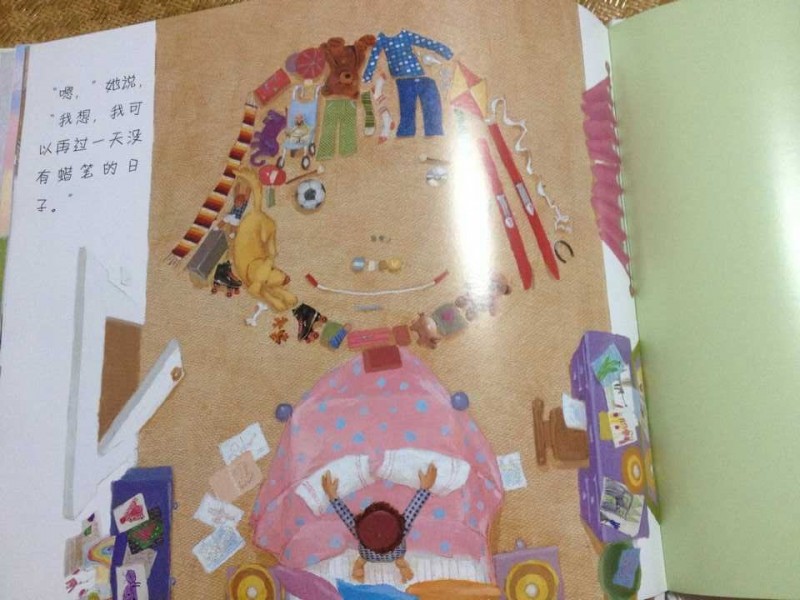 因为最近特别喜欢画画,已经到了走火入魔的地步,每天只要有时间就会拿起画笔,在纸上挥舞,虽然最后的作品不算精彩,不太好看,不过能遇到一件自己喜欢干的事情,能自己坐下来在那画2个小时也是让我很欣慰的一件事情,所以还是特备鼓励和支持他的画画兴趣的。 当看到地带上一本跟画画和蜡笔有关的故事时,我当然希望可以跟宝贝一起试读,拿到书的那一刻,不夸张的说,我和宝贝都被书中的故事所吸引,都被书中主人公超富有创造力的行为所折服,真的是太精彩的故事,太有吸引力的情节,宝贝非常喜欢的一本书呀。