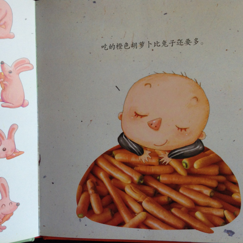 ![]() 也许每个当妈妈的都为孩子挑食的问题发过愁吧,回想起自己喂孩子吃饭的心路历程真是不堪回首:大热天的为了让孩子能吃的有营养些,特意跑去菜市场买菜,花花绿绿的买了一大袋子菜,又进厨房对着食谱忙活一上午,好不容易折腾出颜色漂亮,味道香香的儿童餐,结果孩子看都不愿意看,好说歹说的尝了一口就被彻底遗弃了。当时我真是搞不懂了,我尝着挺好吃的呀,为什么孩子就不吃呢?每当这时候,我真想有人能来给孩子做做思想工作,让她好好吃饭呀!! ![]() 还好,自从上了幼儿园以后,馨馨让老师管的已经学会乖乖吃饭了,就是挑食的这个问题甚至没解决,而且因为班上爱挑食的孩子不算少,所以幼儿园老师从七月份开始,一直针对挑食的问题给孩子们讲各种各样的故事,引导孩子们不要挑食,所以我一收到这本《我要长大》,发现正对路子,立马就让馨馨带去幼儿园了。 ![]() 幼儿园不让家长进,所以下面就是馨馨的转述了:我们老师说了,这本书的质量真好,大小也合适,小金鱼(班里小朋友的小名儿)说书里的光头小男孩长得特像二班的牛牛,我们拿着书去找牛牛,牛牛说不像自己,因为牛牛一颗牙都不少。我听着馨馨的转述,头有些大了,这孩子思维过于跳跃了,让她说下去,说到睡觉也说不到点儿上,还是直接问她看没看懂故事的意思吧。结果馨馨郑重的点了点头,又摇了摇头,说大部分懂了,但是有些事老师也不懂,也解释不清楚,所以我们也都不懂。什么事能让老师都解释不清楚呢?算了,先说说看懂了什么吧:馨馨说,书里的小哥哥觉得他身边的很多好吃的好玩儿的都很大,可是他自己太小,所以好吃的东西够不着,好玩儿的游戏玩儿不了,所以他就想快点儿长大,所以什么都吃,比兔子吃的都多,连最不爱吃的东西都吃了,最后他就长高了,天天都特别开心。 ![]() ![]() 对,就是这个意思,所以我趁热打铁赶紧问馨馨从故事里明白了什么道理,馨馨说老师告诉大家书里的故事就是要让小朋友知道,想健康长大高个儿就不能挑食,什么蔬菜水果都要吃。明白了就好,我问馨馨,那今天咱们吃胡萝卜饼好不好?馨馨小大人儿似的叹了口气,无奈的说,那好吧,我也吃“彩虹”吧,但是尽量多放些糖吧。哈,这小丫头,怎么就是吃不惯胡萝卜味儿呢。但是只要她肯吃,就是好现象,这个故事就没白讲! ![]() 突然我想起来馨馨说有些内容她没听明白,老师也不明白,就问她究竟哪里没听懂,馨馨说就是书里说的,“怪物们最爱的蓝莓”那句不懂,我们不明白为什么怪物们最爱吃蓝莓呢?是哪个动画片里演的吗?我们班所有小朋友都爱吃蓝莓,那我们要是一直这么吃,是不是就是怪物了呀?老师也回答不了,就说给我们查查,再告诉我们为什么怪物爱吃蓝莓。唉,这帮孩子,还真是爱较真呢。