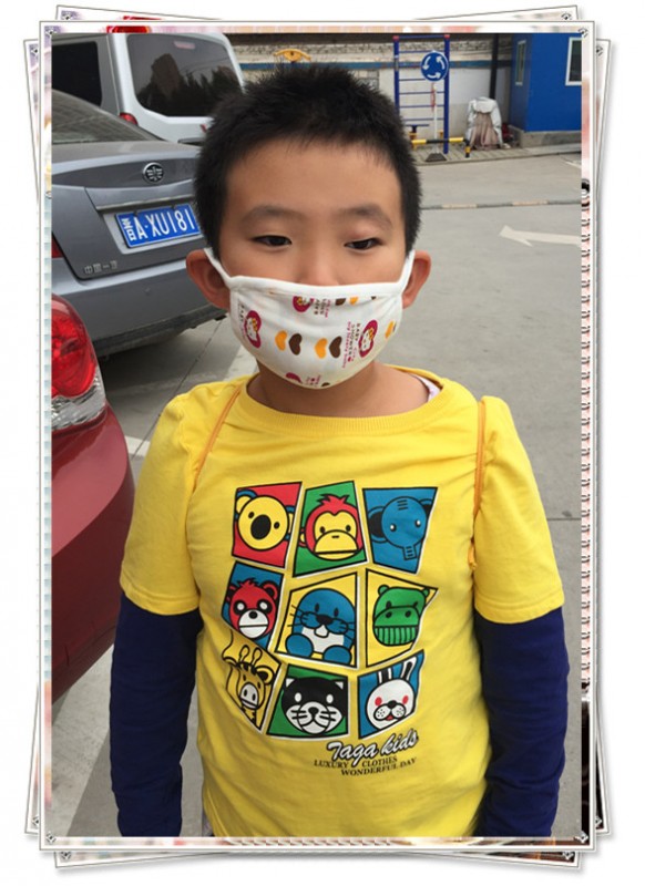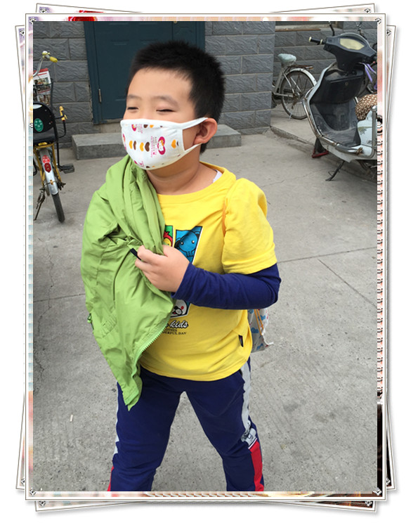 先来说为什么就想起戴口罩了。那是因为 前几天给牛又处理了两件短袖,外加牛朋友宝宝的一件长袖秋衣,然后 里面送了一个口罩。这样的小礼物我通常都不会理会的,感觉质量肯定不是什么好的,就随手 放在沙发的一角落处。让牛试穿了衣服之后,发现瘦了 ,但质量非常的好,价钱也很便宜肯定是 不会退货的 ,那就让牛脱了两件都给弟弟穿就可以了。  牛对衣服并没有  多大的兴趣,而偏偏对放在一边的口罩很有兴趣,拿起口罩为我是谁的,我说是送的。又问那他明天出门的时候能不能戴上出门了。我回他一句,如果你是病人的话就可以戴上出门的。   听到这句话并没有打消了牛 要决定戴口罩出门的想法 ,于是下午去上书法课的时候,在阳光明媚的下午时分, 牛戴着商家赠送的口罩 下楼 去上课了。