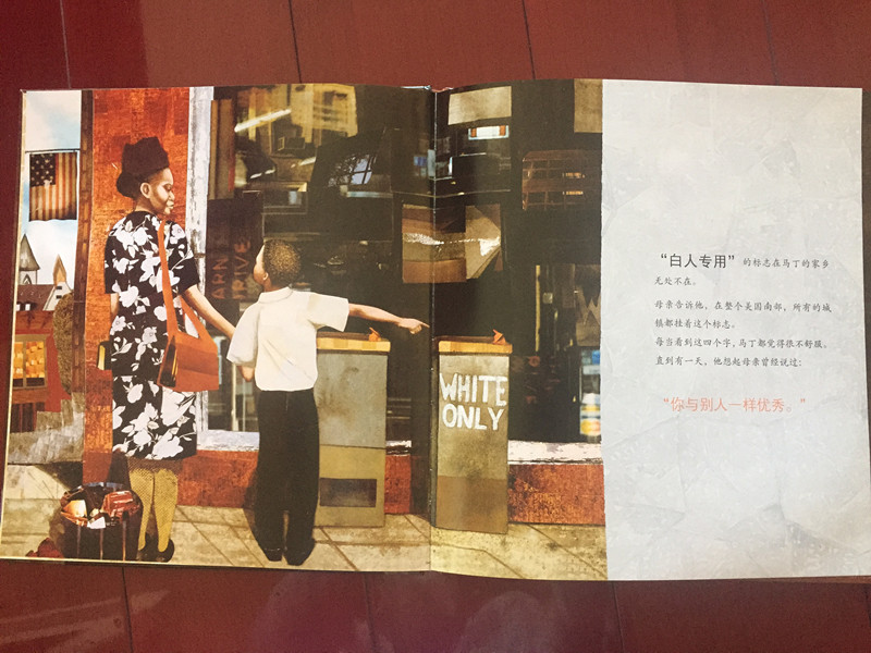 每一个人都有很多不同梦想,在成长的过程中,为了梦想,有多少人,能坚持的住呢?会为了梦想而执着呢?偶尔回头想想,我就没有坚持住,所以我的梦想就成为灰暗角落里的灰尘,当你勇往直前,用心,用力去坚持,那就是太阳的光芒,照亮前途。 轻轻翻开《我有一个梦想》,一页一页细细品味着书中,马丁.路德.金的梦想。在那个社会不平等的年代,黑人就如同他们的肤色一样,不受人喜欢,爱戴。可是他们有都是活生生有血有肉的有感情的人。当遭遇社会的不平等,社会的歧视的时候,他们要怎么做,是低头忍受,还是奋起反抗?如何反恐?如何斗争? 其实,对于有了年龄的人来说,对于那个年代,我们都知道,是一个很残忍的年代,那个时期,战争频发,战乱频发,经常会有很多人,会为战争而死去,不一定死在战场上,也会死在阶级内部矛盾上。那个年代,相对于现在的和平来说,真的是太残酷了。 《我有一个梦想》有如轻轻禅语一样,平和的,有力量的,感受着马丁路德金,在为了梦想而努力的过程,没有暴力,没有战争,没有伤害,只有努力,只有坚持,用他们的和平方式去争取权益利益。而这样的阐述,太符合了现在读书的孩子们的现实,他们没有生活在战争的年代,那么为了梦想要怎样,是通过战争,暴力来解决问题,还是通过自己的努力,坚持而达到目的呢。书中,在这部分阐述的太有力量了。“行走、交谈、歌唱、祈祷,马丁与他们同在”,就是这样通过和平的方式,努力朝着梦想而努力。 最近比较红火的中国好声音,里面就有好多选手,都曾在唱歌这个问题上,受到很多打压,父母的不同意,周围的嘲讽,而他们没有放弃,所能做的,就是在梦想的路上,坚持,在坚持,坚信,在坚信,这也就是为了梦想努力的一种手段。 跟着孩子一起读了一遍又一遍,孩子非常喜欢。有一次,孩子不好好练琴,我生气的说:再不好好练,我就打屁屁了。孩子告诉我:妈妈你这样是不对的,我要向马丁路德金,学习,通过游行,示威,交谈,向你抗议,打人是不对的。我内心笑了。这就是读书的力量,孩子知道了运用。那么希望你能多次去读一读,书中另一种魔力,那就是,如何坚持,如何在困难的情况下,在艰苦的条件下,还能坚持自己的梦想。 梦想!最难的就是在通向结果的过程,这是最难的。梦想可以随口一说,可以随着大脑随意想象,但是坚持到梦想成功,这才是最难的。跟着马丁路德金,学习,梦想的坚持,梦想的成功。 ![]() ![]() ![]() ![]()