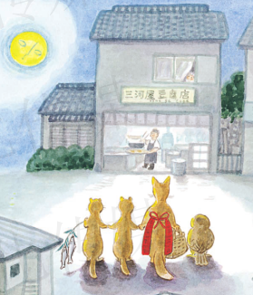 “小吉,这么晚,你去哪里呢?”黄鼠狼小七和新井问。“去豆腐店买油炸豆腐!”“带我一起去吧!”“好啊,辛苦啦!”