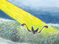 会是谁呢?月亮先生刷刷刷照过去,露出三角形耳朵的家伙逃走了。 坏家伙逃走了,它还会来吗? 爬山呀爬山,狐狸小吉回家去。草丛里不知道是谁在说话:“可怕吧,真可怕!我要把你的油炸豆腐都抢走!”