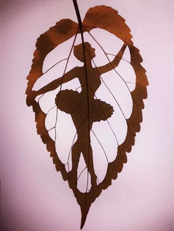 在画面中,树叶出现了一直贯穿着整个故事,从狐狸小吉的手中到了豆腐店伙计的手上,最后在小吉的摊点上又出现了很多,这次是作为包装袋使用的,可以和孩子们一起探讨树叶都有哪些用处,可以做什么。我和淘淘几乎每年都会做树叶画,给大家看几张网上找来的漂亮图片: