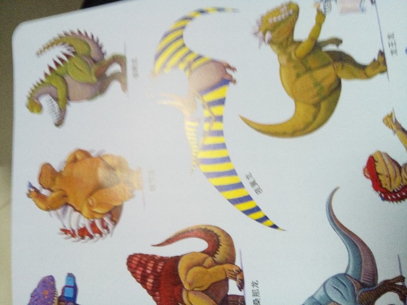 书里的内容设计的非常衔接,开头的两页是一样的内容,都是每一个恐龙的照片和名字,这样的设计是在读书之前对出场的恐龙有一个具体的认识,往后翻书看故事的时候,我们就知道出场的恐龙叫什么名字了。第一页和第二页的内容是一样的,这样的设计,估计是让孩子记忆深刻吧,我家的孩子会喜欢这样的画面,我会在第一页给宝宝指出一个恐龙,让她在第二页找出来相同的那个,这样能开发孩子的智力,让孩子学习在不同的种类里找出同样的东西来。