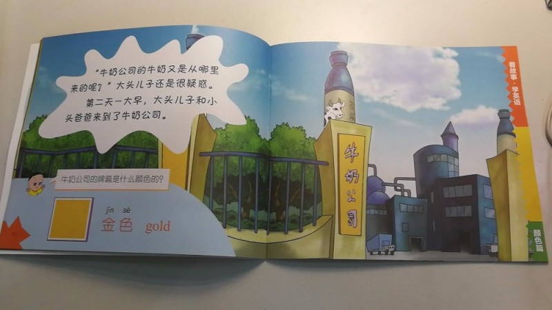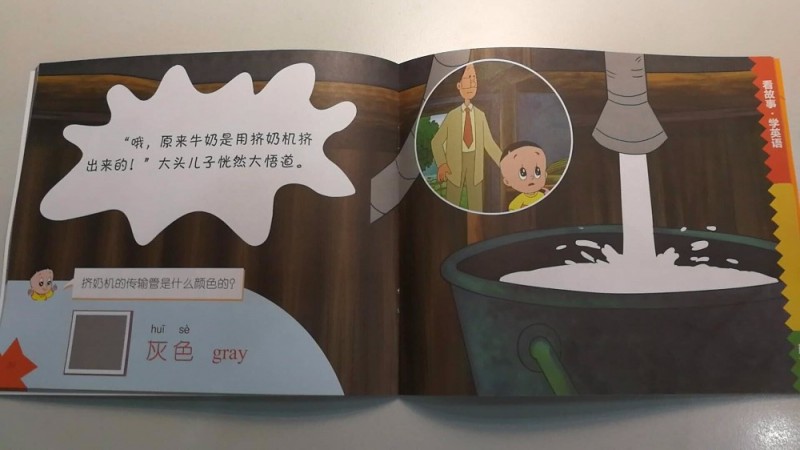 ![]() 大头儿子和小头爸爸是我的宝贝们最为熟悉又最喜爱的动画偶像之一,在这成长的最初时光里,和他们一起玩耍,一起欢笑,见证大头儿子每天丰富多彩的故事,每一个故事都让宝贝有了一个新的经历,新的见识,新的感觉。 ![]() 收到这本《大头儿子和小头爸爸•亲子互动故事书》,聪明好学的大头儿子要“呵护孩子的好奇心”带着宝贝去认识“牛奶从哪里来”。 ![]() 宝贝总是对身边的世界充满好奇,充满疑惑,总想对这个那个感到有趣的事情问一个为什么,问是从哪里来的。大头儿子就是这样一个有着打破砂锅问到底的一股劲儿,这就是宝贝的好奇心,就是宝贝的求知欲。这本书正是从大头儿子提出的为什么当中,给宝贝解惑,让宝贝明白道理的原委。 ![]() 故事的发生是从好奇的大头儿子的一个问题开始的。一天,大头儿子收到送牛奶的阿姨的牛奶快递,于是他开始提出问题:起先他以为牛奶是阿姨自己做的,当得知牛奶公司做出的牛奶,他还是很疑惑。第二天,他和小头爸爸来到牛奶公司,询问个人叔叔:牛奶是怎么做出来的。他们又来到奶牛场参观,看到牛奶是用挤奶机挤出来的,大头儿子这才恍然大悟,他自己也动手尝试着给奶牛挤奶,结果牛奶喷了他一脸。为了告诉其他小朋友牛奶是怎么来的,大头儿子通过《大头小头报》给大家阅读。就这样,一个个问题得到了答案,大头儿子让宝贝获得了知识。 ![]() 同时,通过截取图中的一些景物,让宝贝认识各种各样的颜色,不同颜色的英文单词,随着故事的展开,随着问题的解答,一一展现在宝贝面前,确实让宝贝记忆深刻。 ![]() ![]() ![]() 更有趣的是,书里还有一些插页,可以做绘画,可以做手工。小头爸爸的简笔画,还有大头儿子和小头爸爸的涂鸦画,以及小朋友们在玩耍的涂色画,都深深吸引了宝贝的兴趣,更让宝贝喜欢的是,还可以把大头儿子、小头爸爸、围裙妈妈和小熊玩具做成手指偶,套在手指上给宝贝演示,更有电视动画的效果,相信会更吸引宝贝的眼球。 ![]() 在大头儿子的陪伴下,宝贝满足了好奇心,也明白了很多事情,还可以听故事,看动画,学知识,说英语,更能自己动手画,自己动手玩。与大头儿子一起玩,一起学,在学中玩,在玩中学,宝贝好开心。 本作品未经作者许可不得转载,转载请征求作者意见。擅自转载使用,将保留追究其法律责任的权利! |