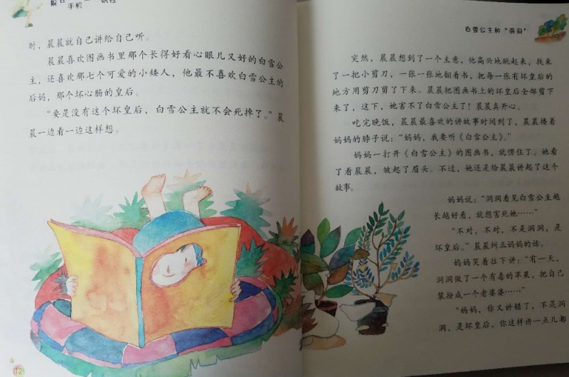 1、第二篇《白雪公主和“洞洞”》 这个故事主要讲述了妈妈给晨晨讲故事《白雪公主》,但是晨晨非常讨厌里面的坏皇后,于是就把图画书上的坏皇后都剪了下来,因此书中就有很多洞洞,这时候妈妈用很巧妙的方式让孩子自主粘好了图画书。 不得不说这是一个非常睿智的妈妈,在看到孩子剪坏图画书时,首先不是发脾气,而是让孩子自己感到做错事而改正。 反观自己,每次孩子毁坏东西,尤其是撕坏书,我几乎都是大发雷霆,对孩子咆哮,此刻的孩子看似老实了,其实没有从本质上解决问题,只会让孩子的逆反心里更强。 看了这个故事,觉得自己的行为对孩子就是一种伤害,孩子和大人一样,做事情都是有自己的理由的,即使是荒谬的理由,我们应该让孩子说出原因,然后从根本上帮助孩子,用聪明的方法。
